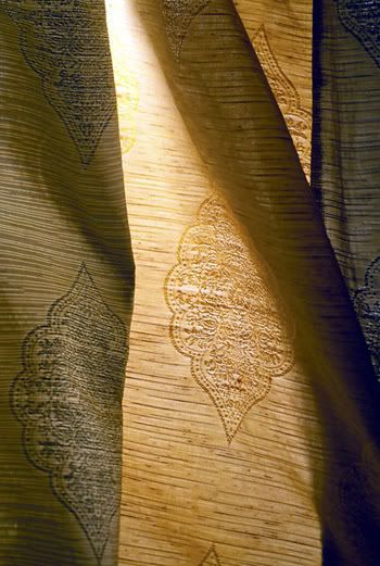 Inspired by India forehead jewelry, Bindi is a double-width casement with subtle exotic overtones. Woven of polyester and linen, Bindi has a distinctive sheen and slub effect similar to silk shantung. The soft powdery colors of this casement enhance natural light beautifully.
